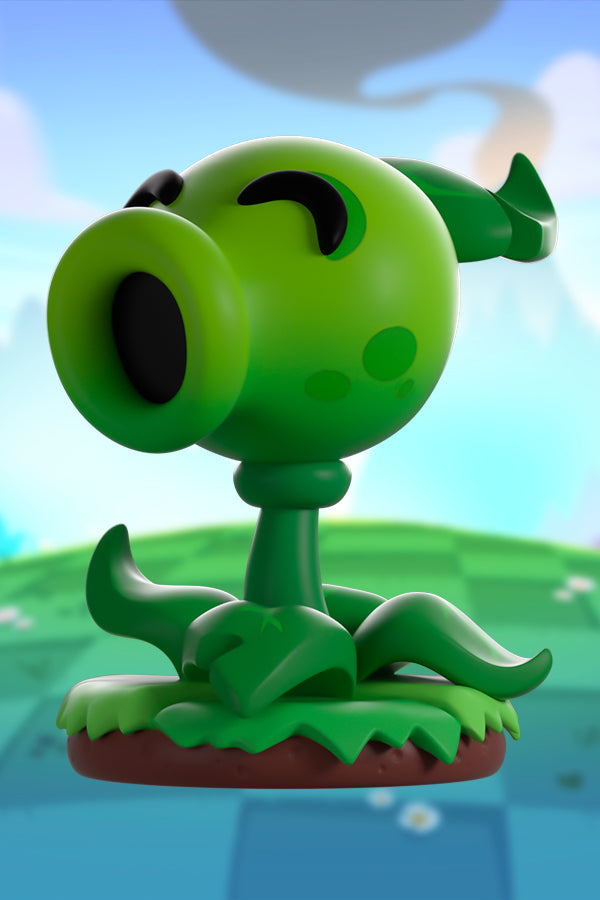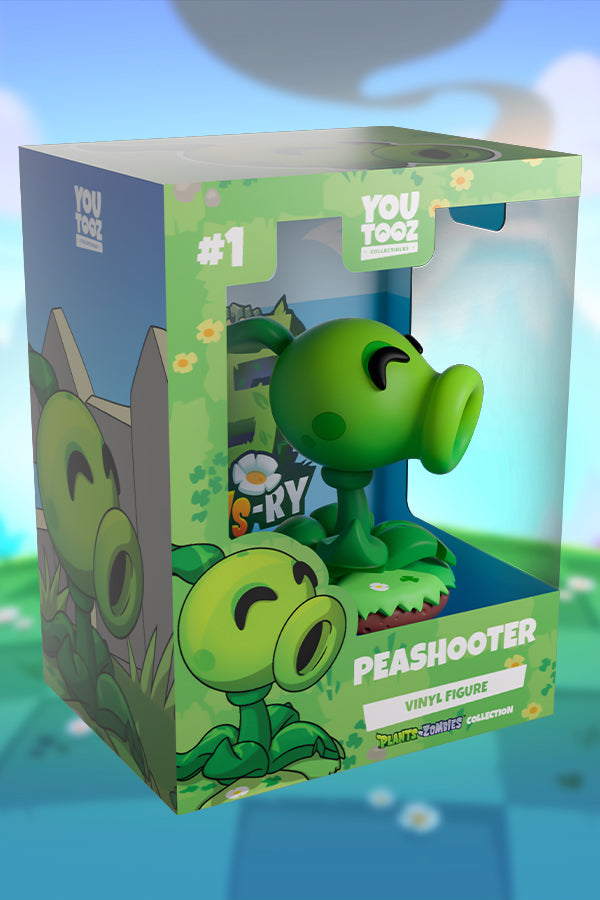 We only use the most top-of-the-line zombie deterrents, so we’ve brought the best one around for their Youtooz debut! At 3.5 inches tall with delighted eyes sitting atop their green bell-shaped head that sweeps down into an open round end perfect for constantly shooting projectiles. A long leaf sprouts from the back of their head as they’re held up by a single stem covered in foliage at the base. The exterior of their packaging sees a checkered green garden littered with flowers and rocks with a white picket fence running through it, while the interior is a bright blue sky with fluffy white clouds.